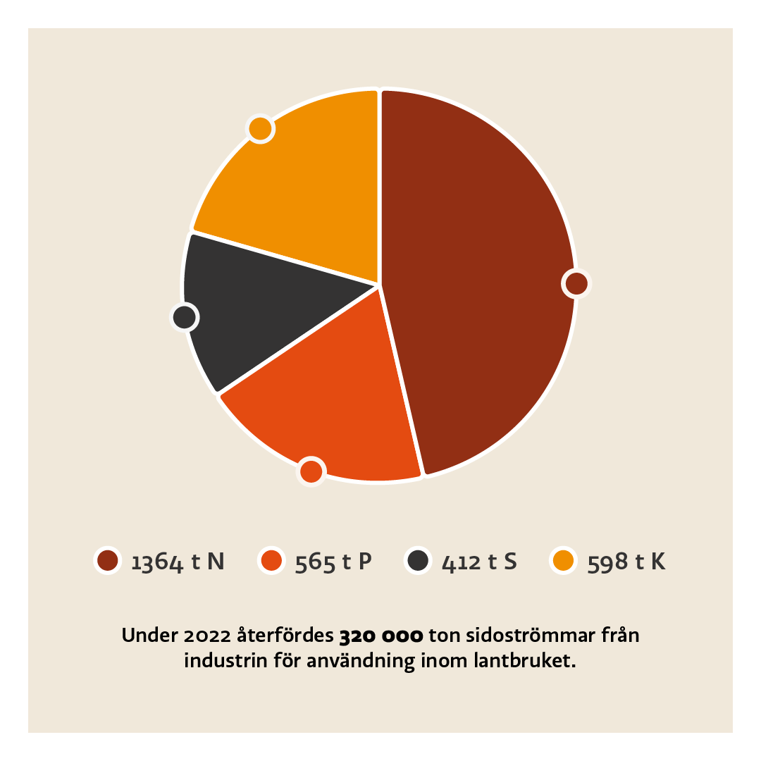 Under 2022 skapades utsläppsminskningar när jungfruliga gödselmedel och jordförbättringsmedel inom jordbruket ersattes med återvunna produkter, tillverkade av material från industriella sidoströmmar. Totalt användes 320 000 ton material från sidoströmmar.