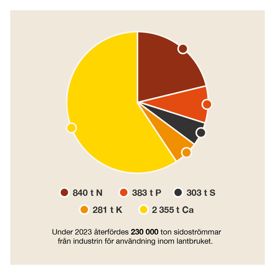 Genom att använda sidoströmmar från industriproduktion minskar vi användningen av jungfruliga råvaror och ser till att våra gemensamma naturresurser används på ett klokt sätt. Under 2023 minskade vi också utsläppen av koldioxid med cirka 22 000 ton och ökade mängden bunden koldioxid tack vare vår verksamhet. Trots det är det fortfarande möjligt att öka jordbrukets användning av återvunna ämnen och industrins användning av återvunna råvaror i de nordiska länderna.